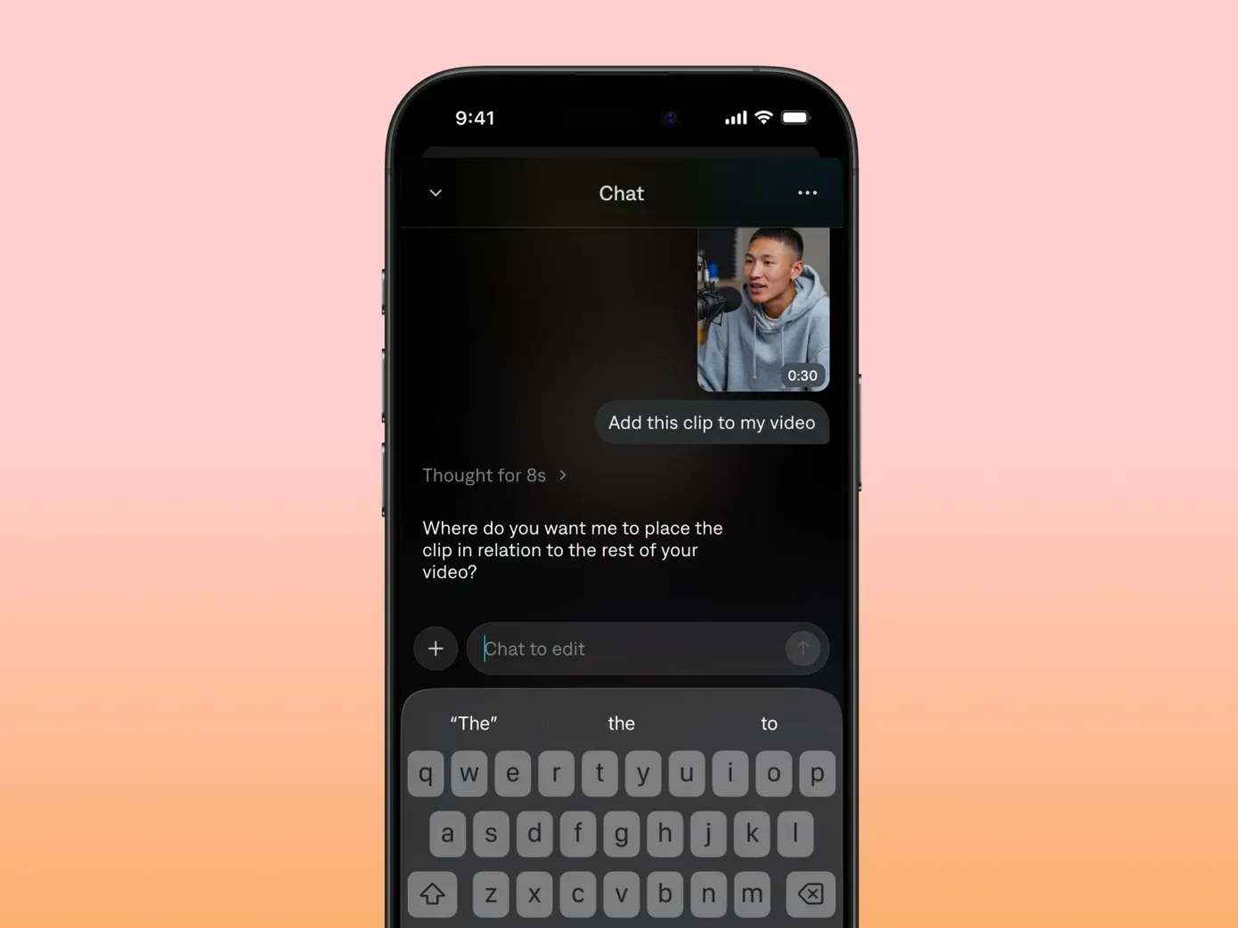 Until now. With the new conversational editor in the Captions app, editing is as easy as typing. We’re launching a chat-based editor for short-form video, now available in the Captions app.