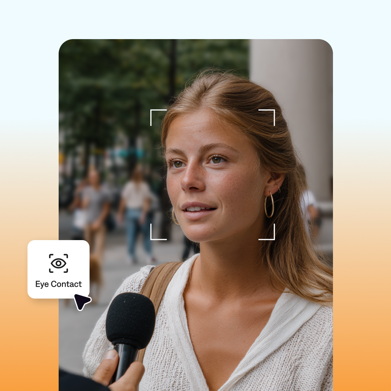 Forget to look at the camera? With Captions, you can correct for eye contact directly in post-production. Our AI eye contact feature makes your video look polished, even if you forgot to look at the camera.